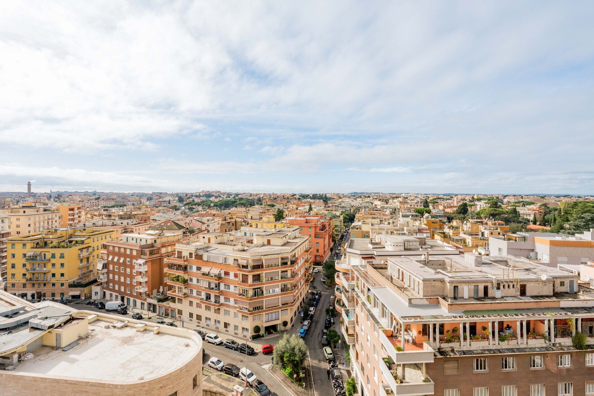 Situé au 10ème et dernier étage d´un élégant immeuble, accessible par ascenseur jusqu´au 9ème étage, avec service de conciergerie et vidéosurveillance, le penthouse bénéficie d´une double exposition avec des vues dégagées et une vue imprenable qui s´étend sur la ville et sur les montagnes des Castelli Romani.